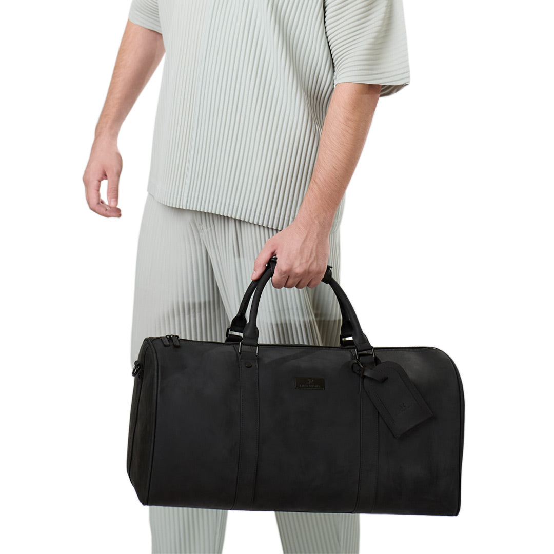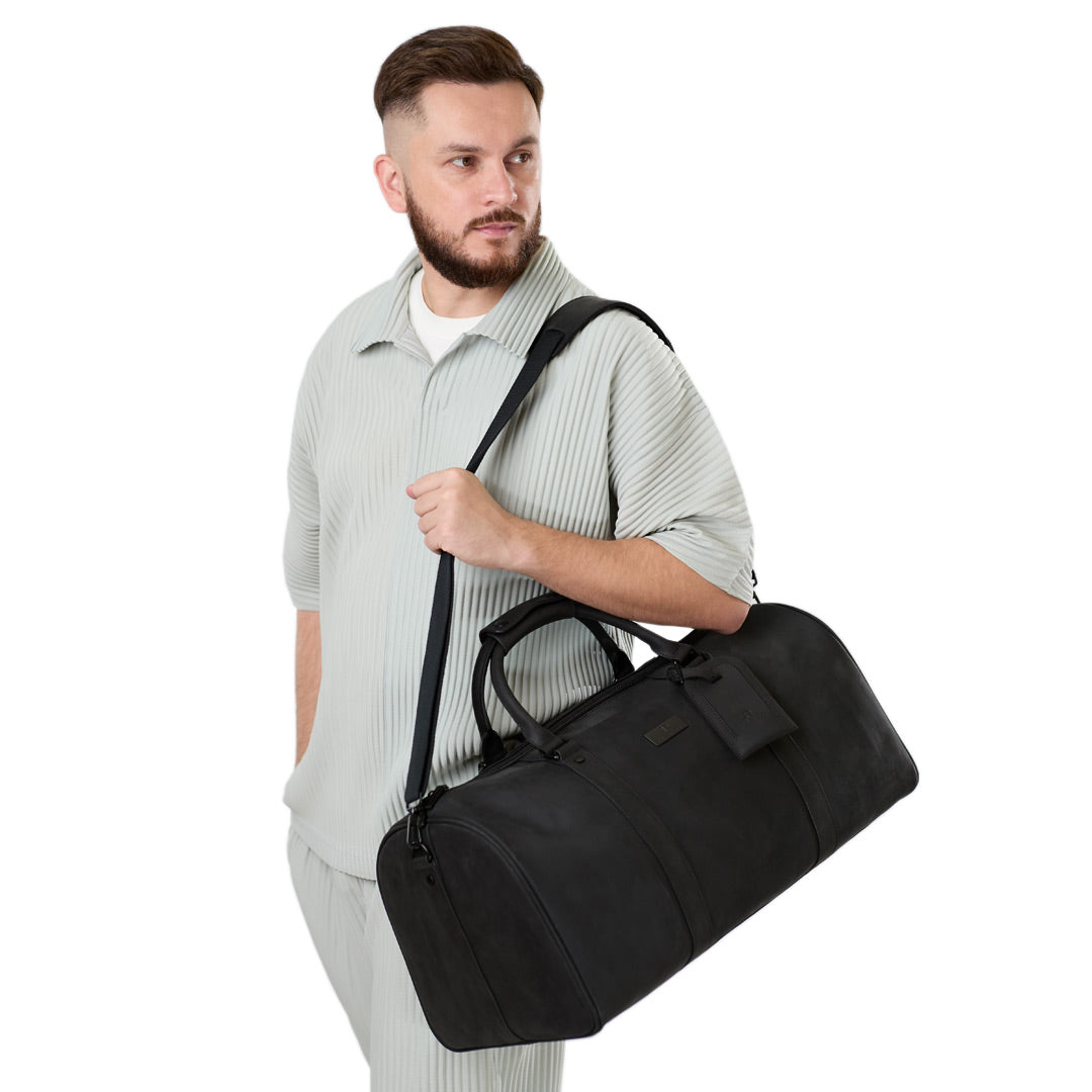 Purpose-built for the man in motion. The Le Noir Duffle was designed from the ground up with precision for simplicity — down to the centimeter. Crafted from supple, all-black Italian leather and accented with matching hardware, this bag blends understated power with everyday utility. Sized for carry-on travel, it features two discreet, waterproof interior side compartments — protecting the rest of your gear from accidental leaks. A detachable black shoulder strap offers comfort when needed, while its silhouette remains sharp in hand.